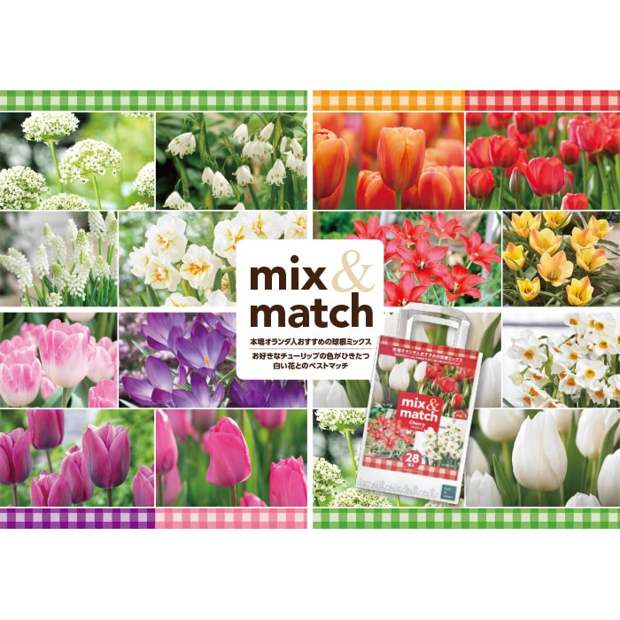 チューリップの色が引き立つ白い花とのベストマッチな球根のセットです。