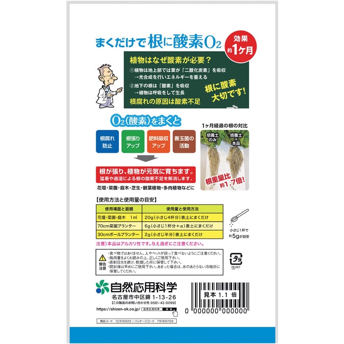 効果1:根腐れ防止 ゲリラ豪雨などの突然の土壌浸水において根に酸素を供給
