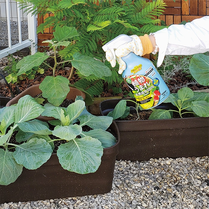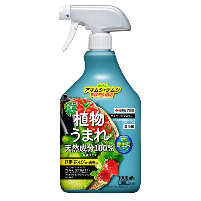天然除虫菊エキス使用で、有機JAS規格(オーガニック栽培)でも使用可能です。葉をかじる虫を速効退治し、ジェット散布で庭木のケムシを狙い撃ちすることもできます。アブラムシ、ハダニ、コナジラミなど群がる虫にも効果的です。