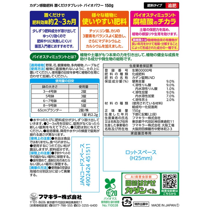 カダン感動肥料 置くだけタブレットバイオパワー