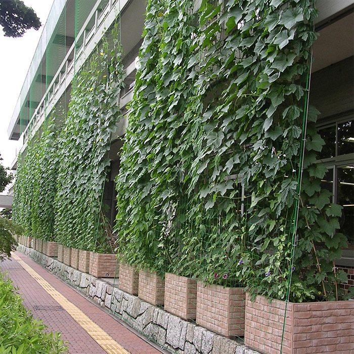 ゴーヤ・キュウリ・ヘチマなどの野菜栽培に適したつるものネットです。目の大きさが約15cmと大きく、ネットの反対側で成長した野菜も目を通して収穫できます。
