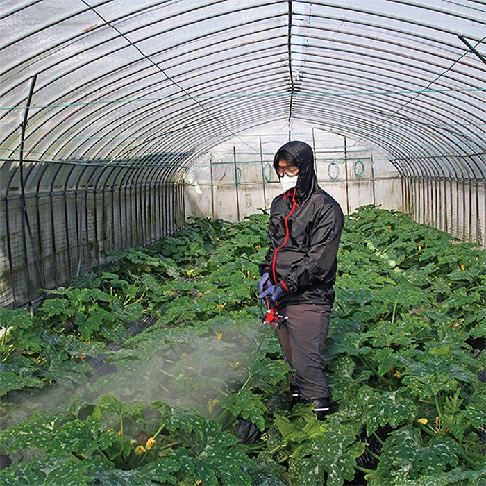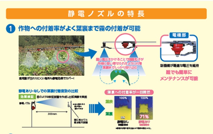①作物への付着率がよく葉裏まで霧の付着を向上