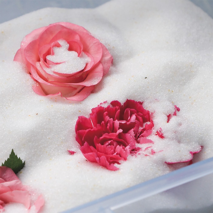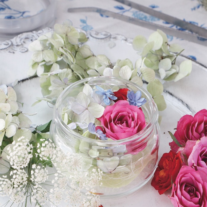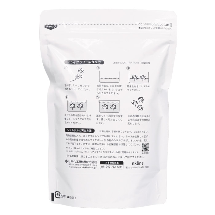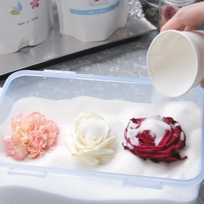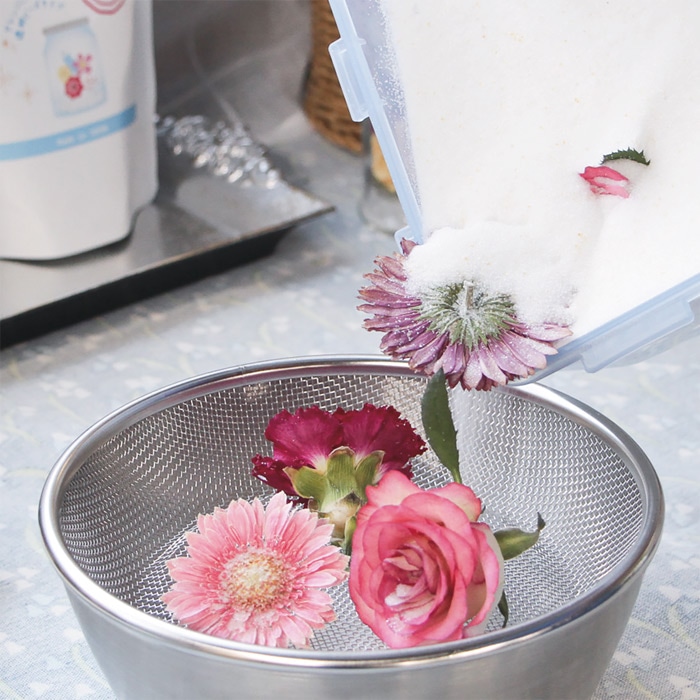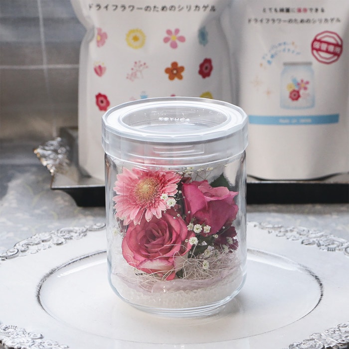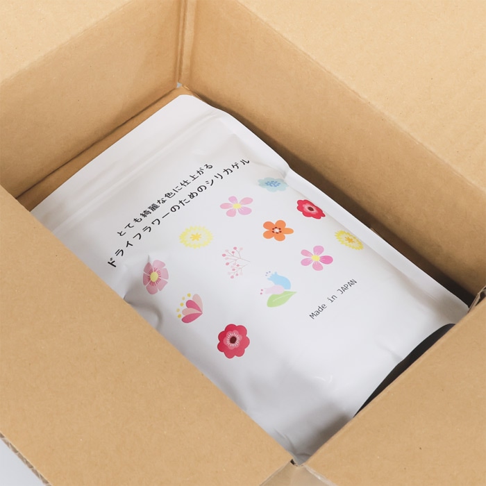 お花に優しいパウダータイプのシリカゲルで、お花の色と形をきれいに残せます。