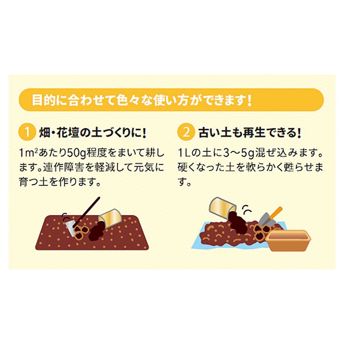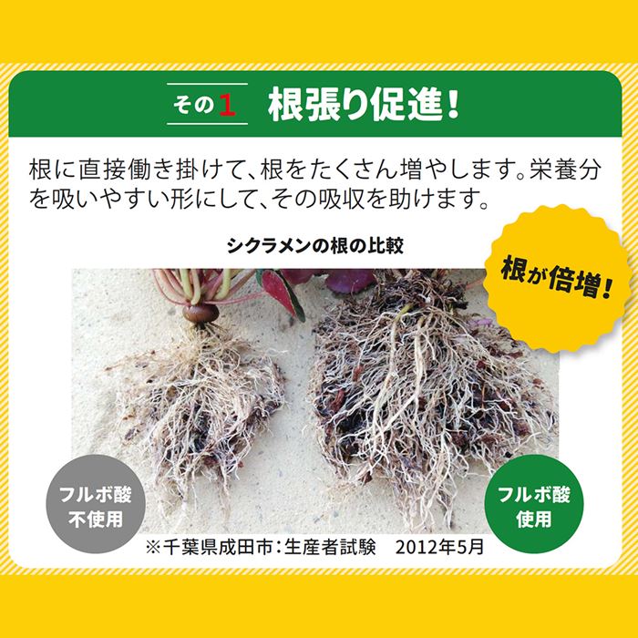 完熟堆肥の50倍のフルボ酸パワーが濃縮。土に混ぜるだけで根張りをよくし、土壌環境を改善します。