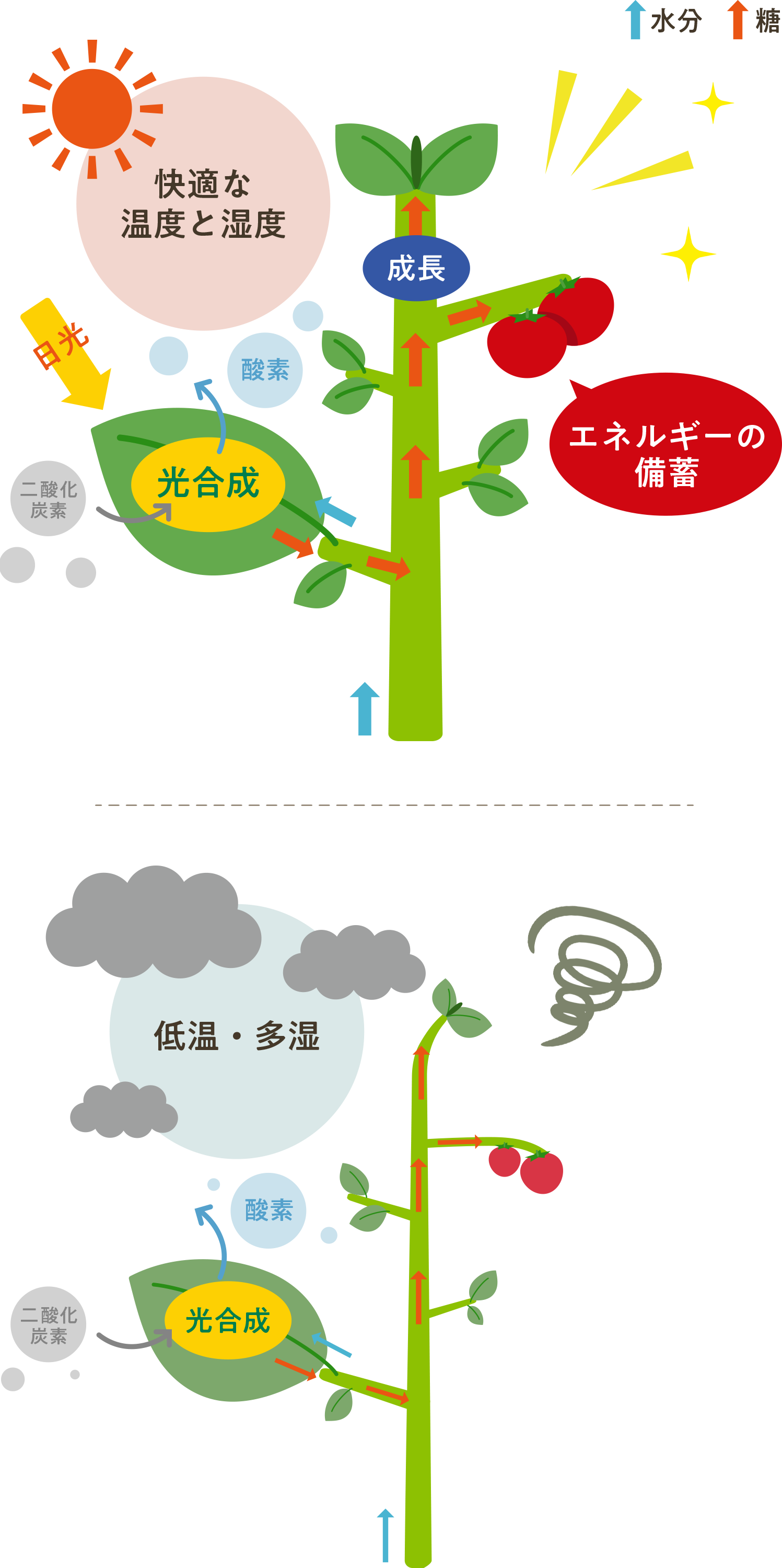 日光をしっかり受けると植物はたっぷり光合成を行うことができます。