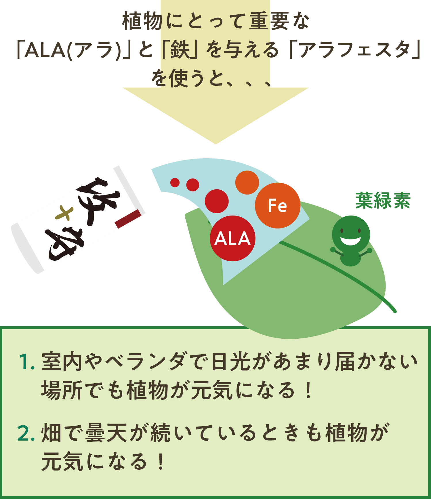 「ALA(アラ)」を補給することで光合成を活発にします。