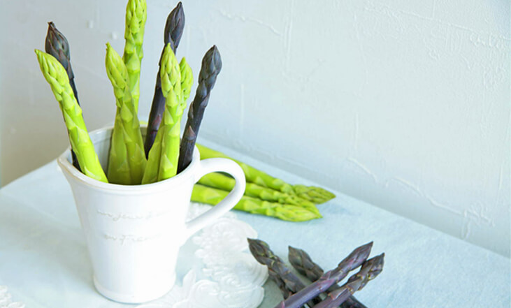 緑色のアスパラガスで、紫色が出てしまう悩みを解決した鮮やかな緑!