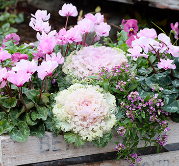 新色の「ピンクバイカラー」は同系色で花の形が異なるビオラ、アリッサム、シクラメンと合わせると、華やかなイメージになり色と形のグラデーションが楽しめます。寒さに強く丈夫で育てやすいコンパクトタイプなので、寄せ植えにもおすすめです。