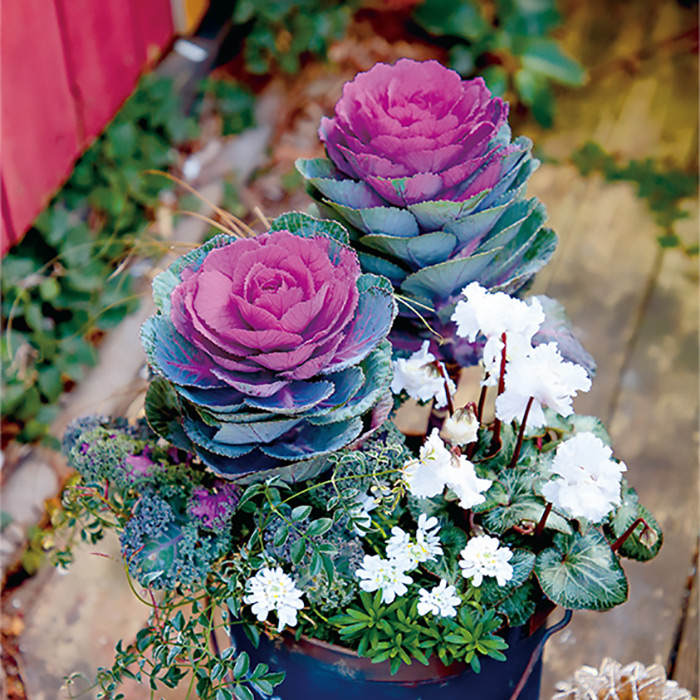 冬~早春を彩る寄せ植えや切り花として古くから人気のハボタン。最近では多種多様なハボタンが登場し、冬の園芸の主役になりつつあります。和風の「お正月」イメージが強いハボタンも、アレンジ次第で華やかでかわいらしいイメージをつくることもできます。もちろんクリスマスにだってぴったり! そんなハボタンに待望のサカタオリジナルの新品種が登場しました!