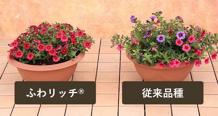 きれいな姿を保つために切り戻しをしたり、開花時期が過ぎたら別の花に植え替えたり、といったお手入れに時間が取れない方にもおすすめです。「ふわリッチ」は自然に枝分かれして新しい花を付け、春から秋まで長い期間次々に開花するので、管理にほとんど手間がかかりません。時間があるときに咲き終わった花を摘む程度でも十分楽しめます。