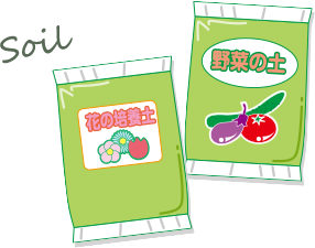 鉢植えの用土は水はけ、水もちがよく、病原菌や害虫の卵などを含まないことが大切。庭などの土をそのまま用いるのは避けましょう。用土を自分で配合することもできますが、初めてであれば配合済みの培養土を購入することをおすすめします。培養土には草花用、野菜用と、植物の種類に応じた専用用土があります。栽培する植物に合った土を選びましょう。