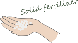 新しく購入した元肥配合済みの培養土なら、栽培開始から1カ月くらいまでは肥料を与える必要がありません。その後は、植物の種類や成長具合に応じて追肥が必要になります。追肥には、肥料成分が均等(例 窒素-リン酸-カリ 7-7-7)かそれに近く、1カ月程度効果が持続する緩効性(かんこうせい=ゆっくり効くこと)の固形肥料が使いやすいです。