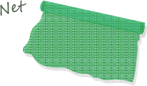 緑のカーテンならではの資材といえばネットでしょう。最近は緑のカーテン用に張りやすい工夫がされた商品もあります。2階以上の高さで緑のカーテンを作る場合、植物が茂るとかなりの重さになりますので、できるだけ糸が太いネットを選びます。キュウリネットは糸が細いのでこの場合は避けましょう。