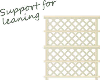 ネットの上端を建物や手すりなどに取り付けられない場合は、立て掛け用支柱が役に立ちます。最近は支柱の先がアーチ状に曲がったものや、高さを調節できるものなど、建物に立て掛けやすい緑のカーテン専用の支柱や、ネットと合わせた栽培セットも売られています。また、床と屋根を物干し用の突っ張り棒を使って、ネットの両脇に2本、しっかりと固定することもできます。他には支柱同士や支柱とネットを結び付けるときに、外れないようにしっかり固定するために、園芸用の結束バンドや金属製の結束器具を用意するとよいでしょう。
