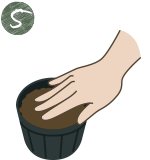 鉢には縁から2~3cm下まで用土を入れます。植え穴を開けて、土を崩さないようにポットを外して、地面よりも鉢土の上の面がやや高くなる程度に浅めに植え付けます。