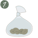 硬実種子のゴーヤーは、ビニール袋に種と常温の水道水を入れ、空気を抜いた状態で水が漏れないように封をする。その後、6時間ほどおいてからまく。