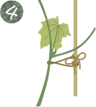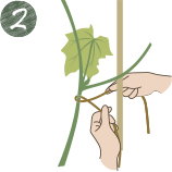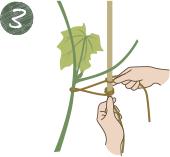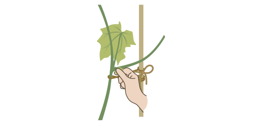 ひもを1~2回交差させ、支柱やネットへ8の字を描くようにひもの両端を持っていく。
