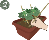 鉢植えでは時間がたつと水やりに伴って土が沈むため、必要に応じて土を足す「増し土」をします。新しい根が伸びて追肥の効果を高めることができ、株自体の活性を高められます。その際、鉢内にたわんで垂れているつるを埋めてしまわないように注意します。