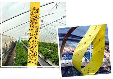 目に見える害虫の場合、手や割り箸などで捕まえて殺す、「捕殺」が一番の基本。定植してしばらくの生育初期なら、保温を兼ねてベタ掛けシートや防虫ネットを張るのが有効。また、専用の粘着シートは、飛来してくる害虫を植物に被害を与える前にキャッチしてくれます。