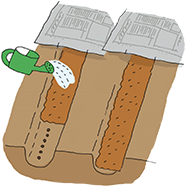 1週間前になったら、1平方メートル当たり堆肥を約3kgと化成肥料を2握り(約100g)、過リン酸石灰を軽く1握り(約30g)を入れてよく耕します。