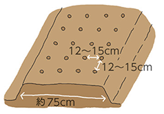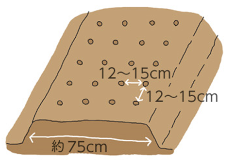 畝幅約75cm、株間は12~15cmで畝をつくります。