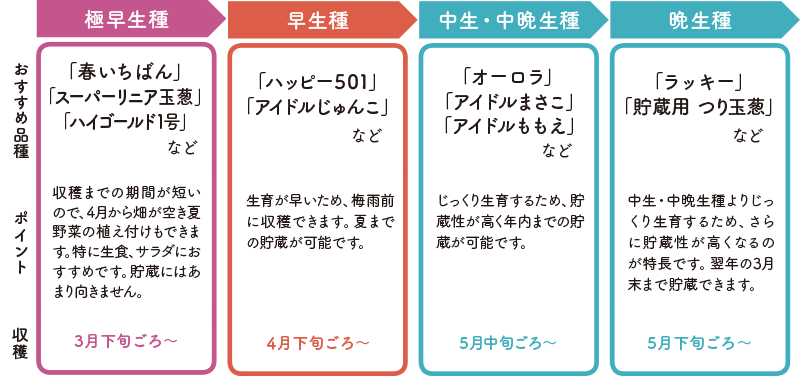 収穫時期による品種の選び方を分かりやすく紹介いたします。