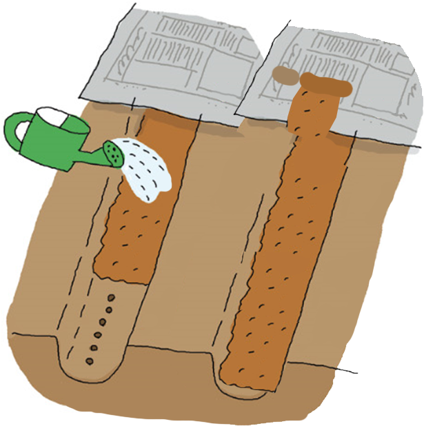 乾燥すると発芽しないので、新聞紙やわらなどをかけておき、発芽したら新聞紙は取り除きます。