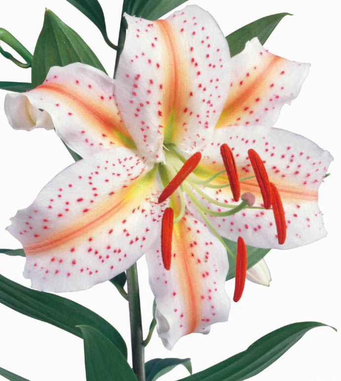 他にはないオレンジのすじが目を引くオリエンタルユリ。