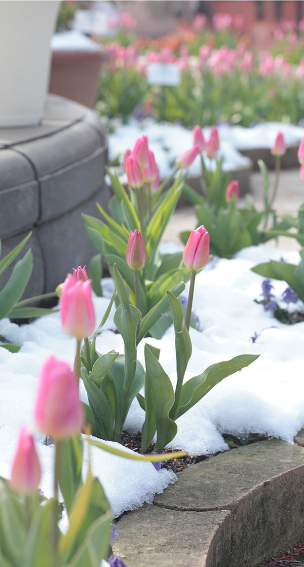 開花が12月~1月ごろであり、本来チューリップが咲かないような雪が降る季節にも開花してくれるのがこのシリーズです。また、通常の春咲きチューリップの開花期間が1~2週間なのに対して、アイスチューリップは寒い時期に開花するため、1カ月以上咲き続けます。