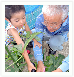 夏休み帰省した孫と一緒に、ナスの収穫をしました。孫は大喜びでした。天ぷらにして、美味しくいただきました。