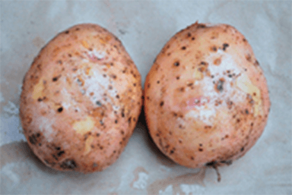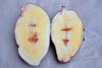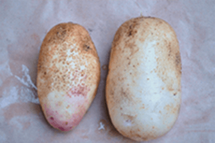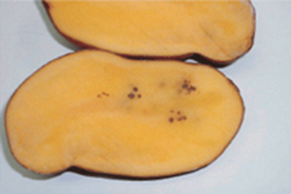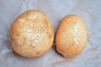 タネイモは異常気象(極度な高温など)による影響で、いろいろな症状が発生していることがあります。これらの症状のものは、ウイルスや細菌などによる症状とは違い、タネイモとしての使用に問題はありません。見た目上、症状の著しいものは極力選別に努力していますが、近年の天候不良により、軽微なものはお届けのタネイモの中に入る場合もありますのでご了承ください。