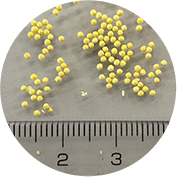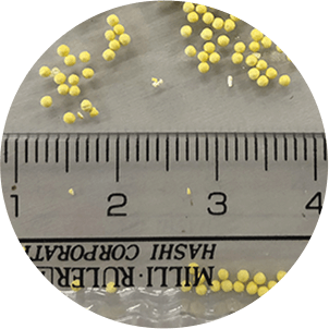 本来、トルコギキョウの種は非常に小さくまきにくい特徴があります。そこで、サカタのタネのトルコギキョウの種はペレットシードと呼ばれる特殊なコーティングをしてあります。