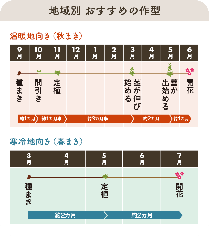 定植から開花までの期間は短いですが、草丈が短くなったり、花の数が少なくなりやすくなります。