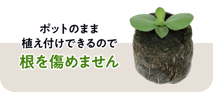 定植をするときもそのまま植え付けることができるので根を傷める心配がありません。