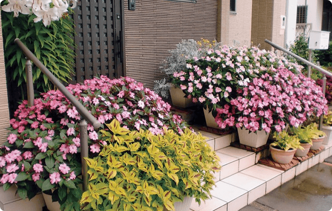 - 品種名の由来でもある“サン(Sun)=太陽 + ペイシェンス(Patience)=忍耐”という特性により、暑さや強い日差しにも耐え、過酷な日本の夏でもたくさんの花を次々と咲かせます。