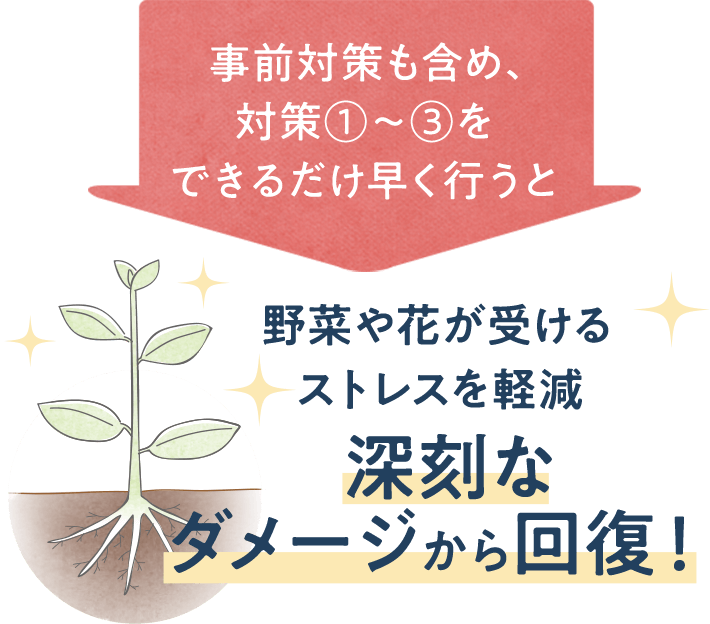 今回紹介する対策を行うことで、作物の回復を助けることができます。