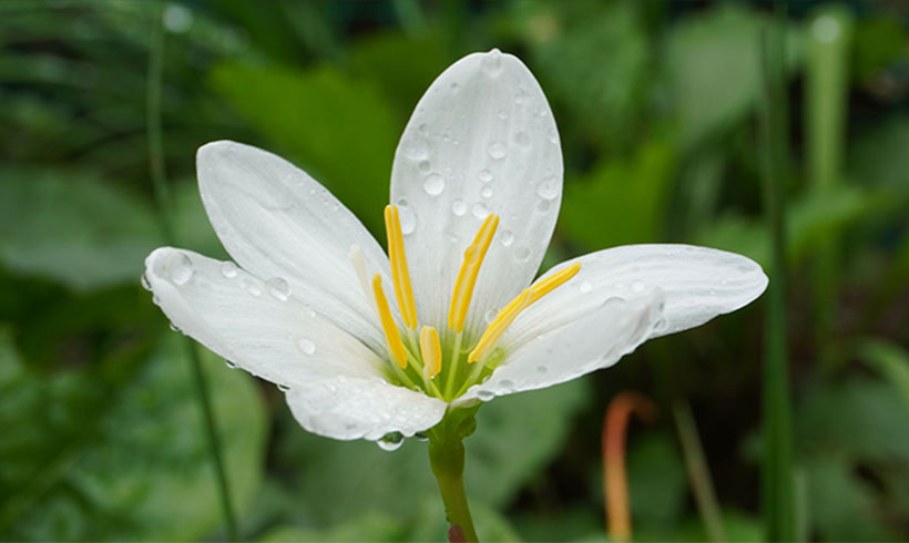 ゼフィランサスは英名の「レインリリー」とも呼ばれ、雨の後に花が咲くことを強調する愛称として広く使われています。