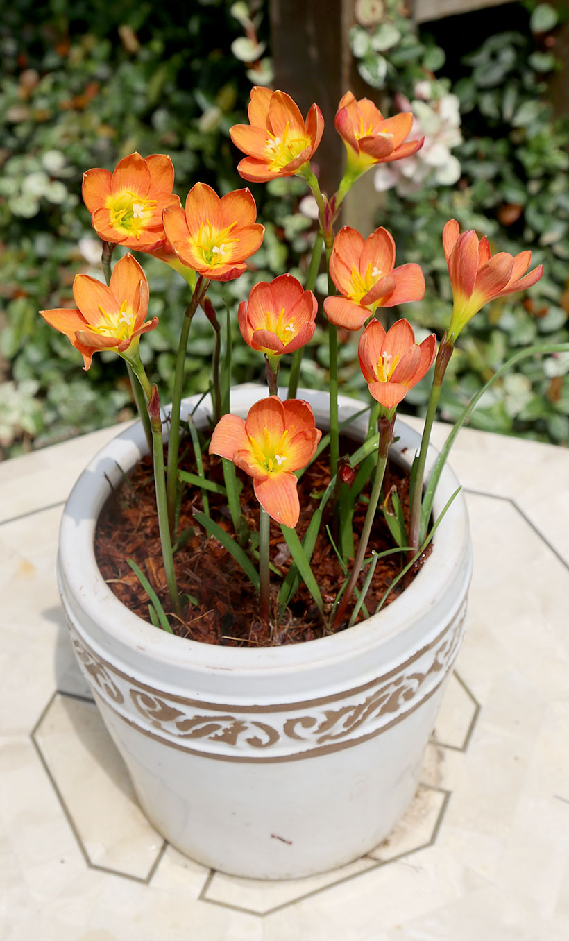 ゼフィランサスは、原産地の周期的な降雨による水分が刺激となって、球根内で次々と作られる花芽が急速に大きくなり、短期間に一斉に花を咲かせる性質があります。そのため、1輪の花もちは2~3日と短いですが、夏から秋にかけて何回も花を楽しむことができます。