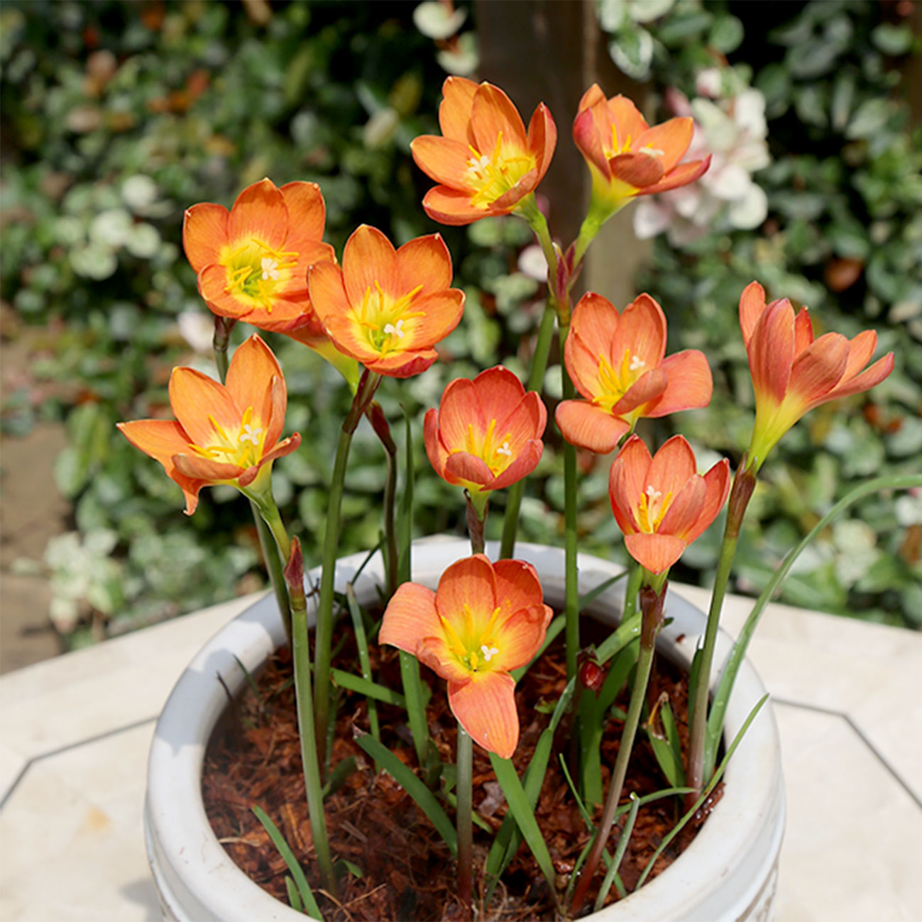 原種の白い花の「カンジタ(タマスダレ)」、黄色い花の「シトリナ」、ピンク色の「カリナータ」が有名ですが、どれも品種改良されていない原種です。そのため、原種同士をミックスで植えても草丈や開花がそろわないので、各花色を固めて植えた方が庭を華やかに彩ってくれます。