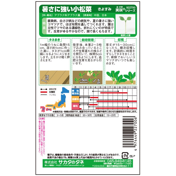 小さめの葉は濃緑色で、軸はしっかりしていながら、硬過ぎず、しなりのある株に育ちます。白さび病の耐病性が強く、育てやすい品種です。