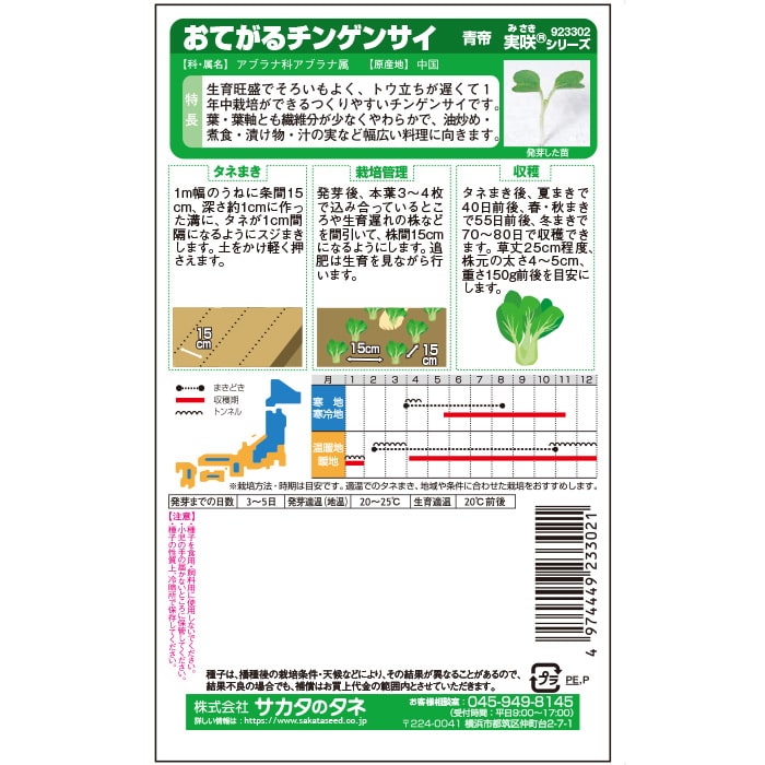 寒い時期でも生育旺盛で丈夫な早生種。初めての方にも作りやすい品種です。繊維が少なく柔らかで、クセのない味がいろいろな料理に向きます。