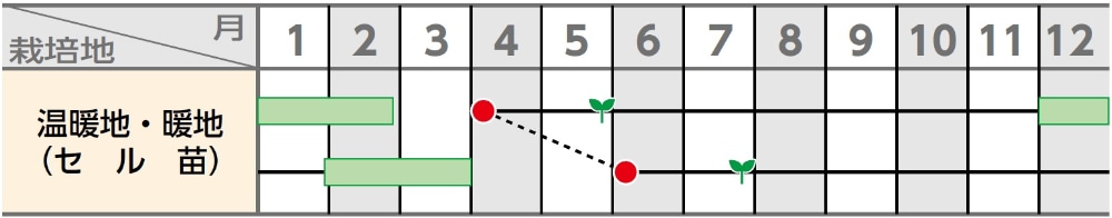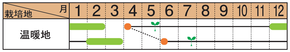 年内から年明けに収穫し始められますが、とう立ちが遅いので3月まで収穫できます。4月に入ると、とう立ちしてくる可能性が高まるので、3月中にとり切るようにします。「夏扇タフナー」と組み合わせると冬から早春まで長く収穫することができます。