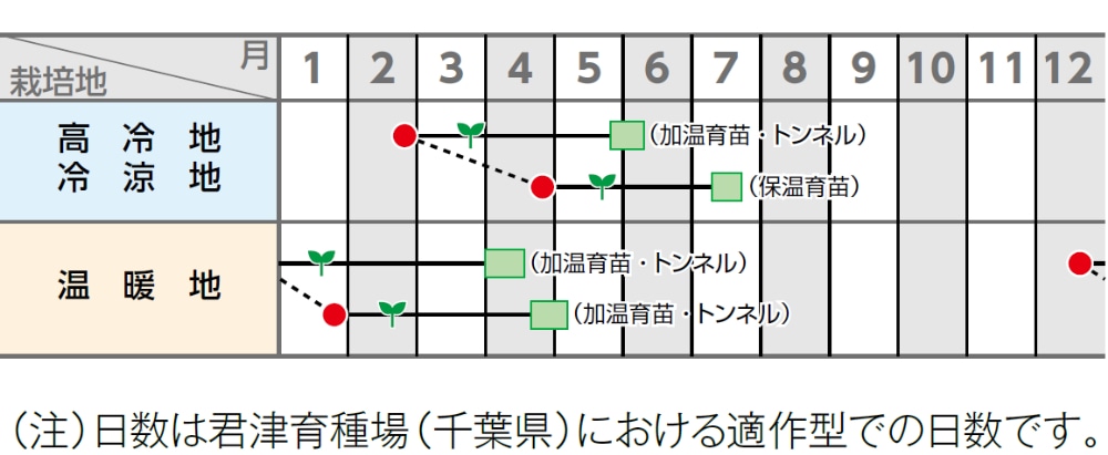 根こぶ病に対して幅広いレースの耐病性を持つ、春まき品種です。極晩抽性があり、球重約3kgになります。