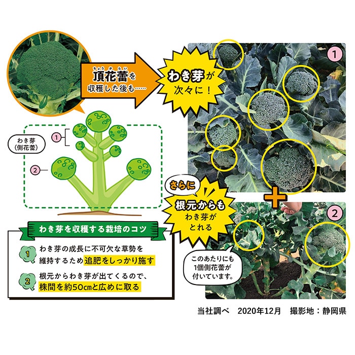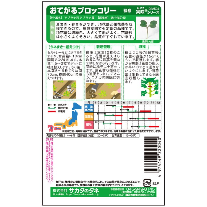タネまき時期が長く栽培適応性が広いので、全国的に栽培されています。品質のよい花蕾が安定して収穫できます。