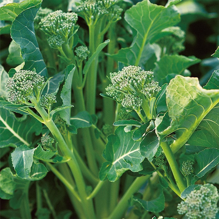 アスパラガスに似た歯応えと甘みが特長。頂花蕾は500円玉大で収穫、その後1株から15本前後のわき芽(側花蕾)がとれます。