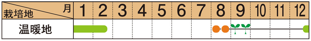 芯葉が花蕾を包む性質があり、寒い時期でもアントシアン(紫色)の発生が少ないです。温度適応性が高く、暖冬でも高品質なブロッコリーが収穫できます。