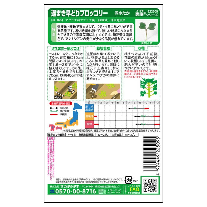 寒さに当てるとさらにおいしさアップ! 豊円形の大型花蕾が付きます。アントシアン(紫色)の発生が少なく、濃緑色でそろいのよい花蕾です。