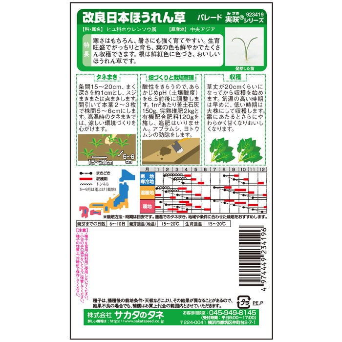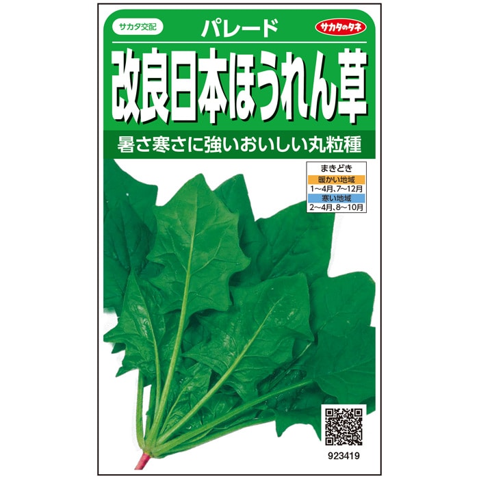 生育旺盛でがっちりと育ち、葉の色も鮮やかでたくさん収穫できます。根元は鮮紅色に色づき、おいしいホウレンソウです。