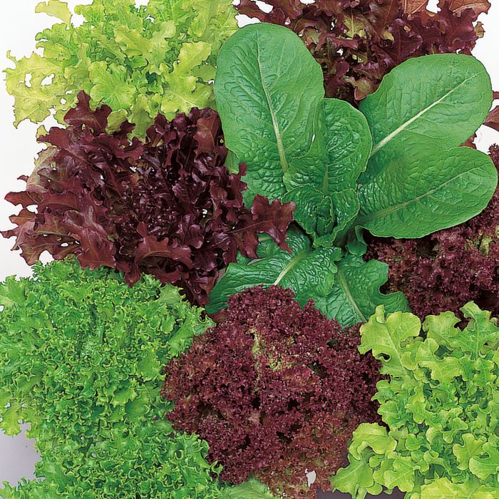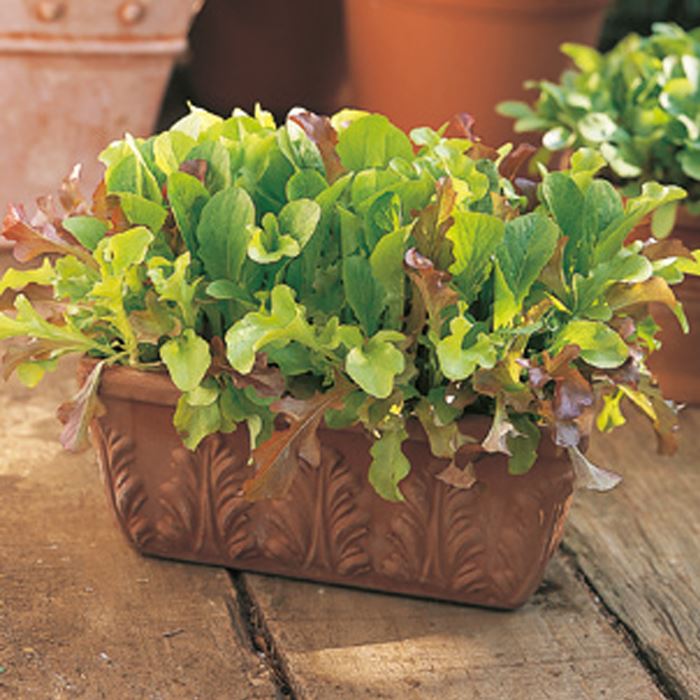 おいしいリーフレタスをミックス。小さなうちから、どんどん摘み取ってサラダでどうぞ。大株に育ってもおいしさはそのままです。