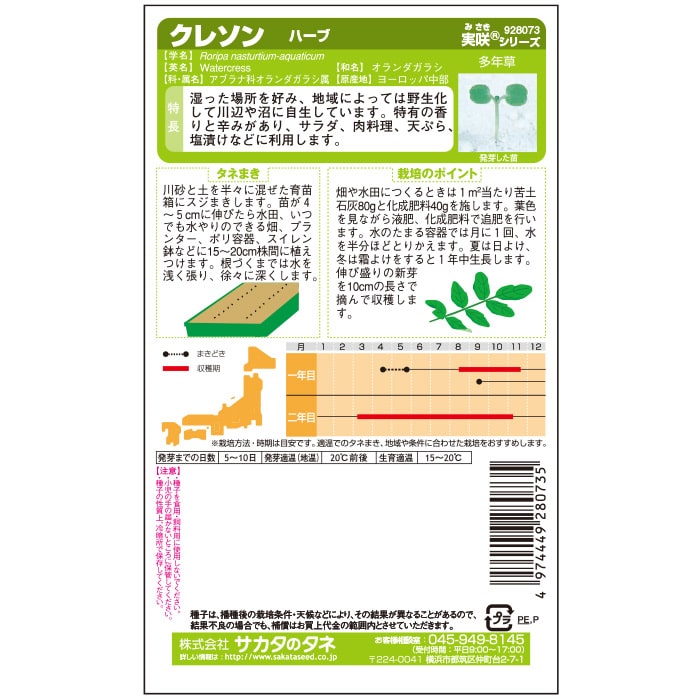 湿った場所を好み、地域によっては野生化して川辺や沼に自生しています。特有の香りと辛みがあり、サラダ、肉料理、天ぷら、塩漬けなどに利用します。